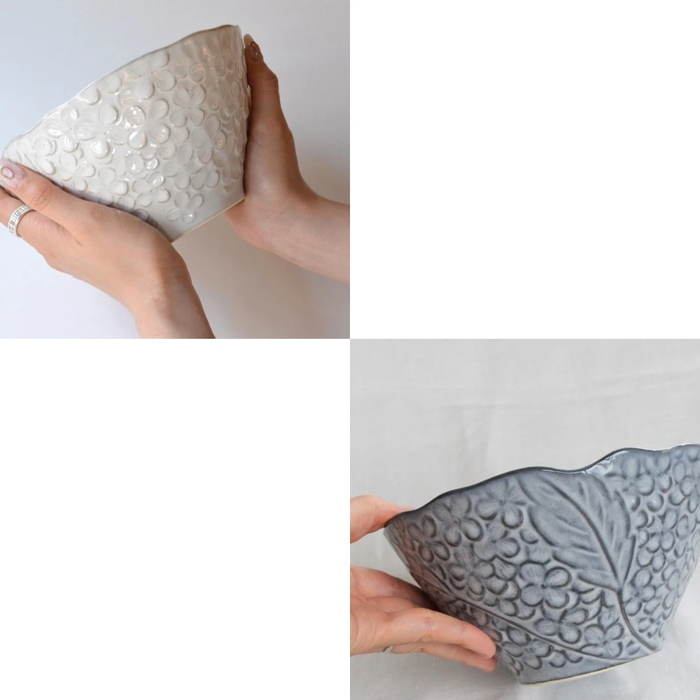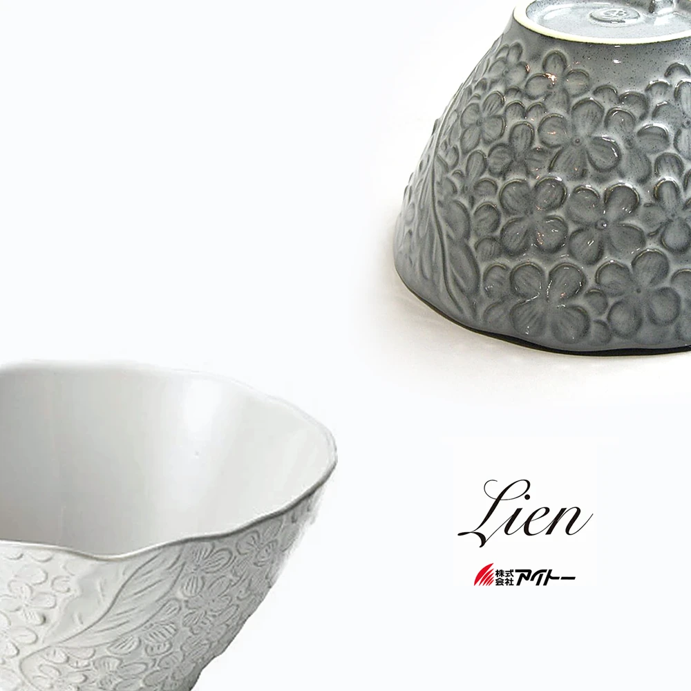 Aito Mino Yaki Lien White Floral Pattern Bowls – Set of 2