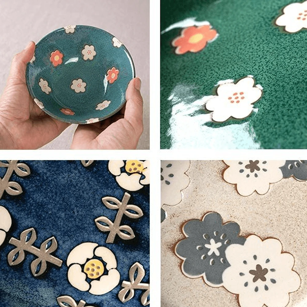 This charming bowl from the Aito Mino Yaki Nordic Flower Series features a lush viridian background, which serves as a canvas for the delicate hand-painted pink and white flowers that adorn its interior.