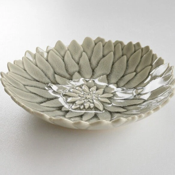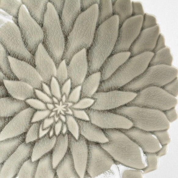 This plate is distinguished by its unique dahlia flower design, which gracefully embodies a sense of natural sophistication. The clear glaze applied over the grey base enhances the intricate details of the flower, ensuring it becomes a focal point of your table setting.