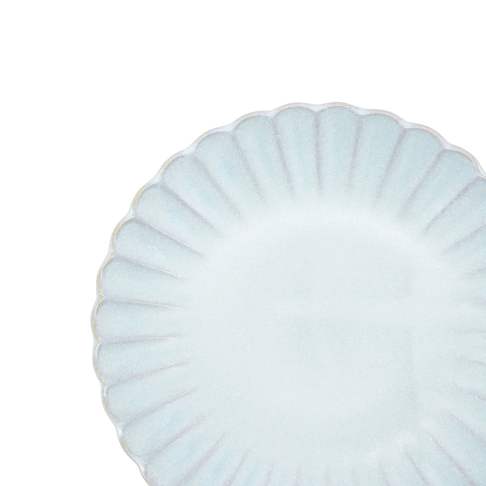 The plate’s flower-like form brings an organic and gentle aesthetic to your table. At 16cm, this side plate is ideal for presenting appetisers, desserts, or small bites, allowing the colours and textures of your cuisine to stand out against the subtle light blue hue.
