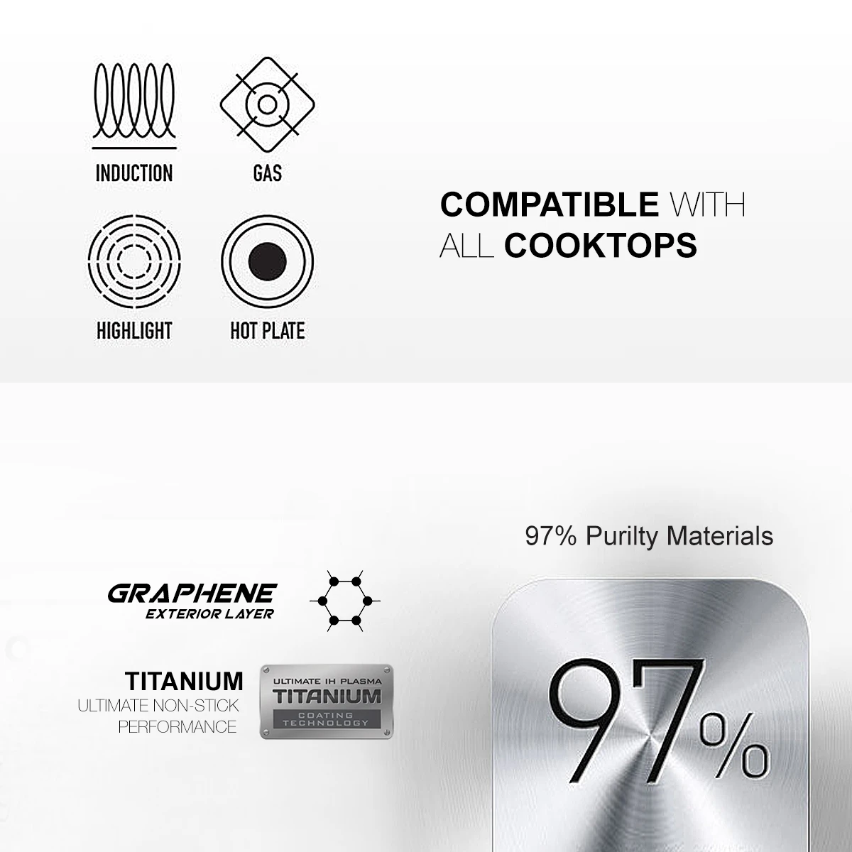 A new graphene-based cookware from Happycall features an innovative 11-layer design. Happycall uses graphene as the core material because it has excellent heat conductivity. The graphene core is then protected by titanium and stainless steel layers. The following image illustrates how graphene cookware is constructed.