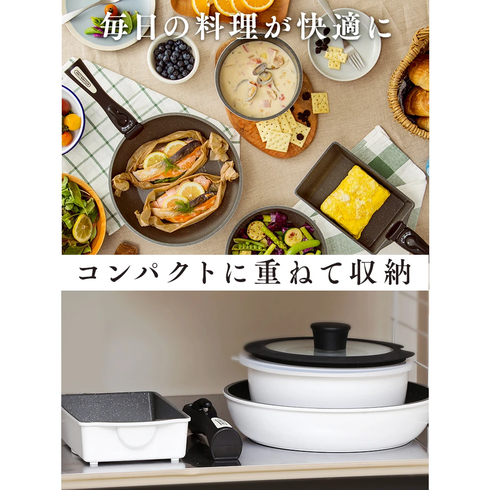 The 12-piece cookware set from Iris Ohyama can conveniently be stored in a small cabinet with less than 0.3 square metre of space.