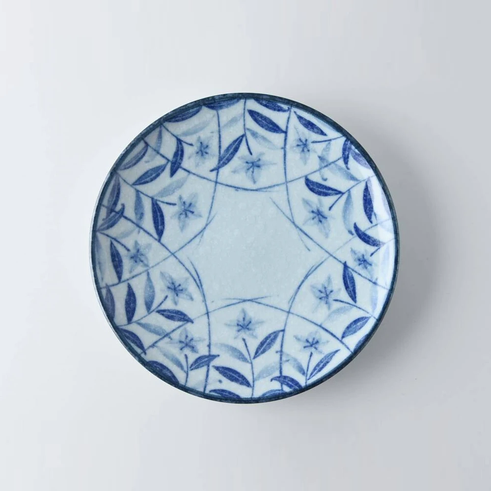 The hand-painted floral design elegantly wraps around the plate, with delicate lines and soft blue hues that evoke a sense of tranquility and sophistication. Perfectly sized for serving small portions or as a display piece, this plate seamlessly blends historical charm with contemporary appeal.