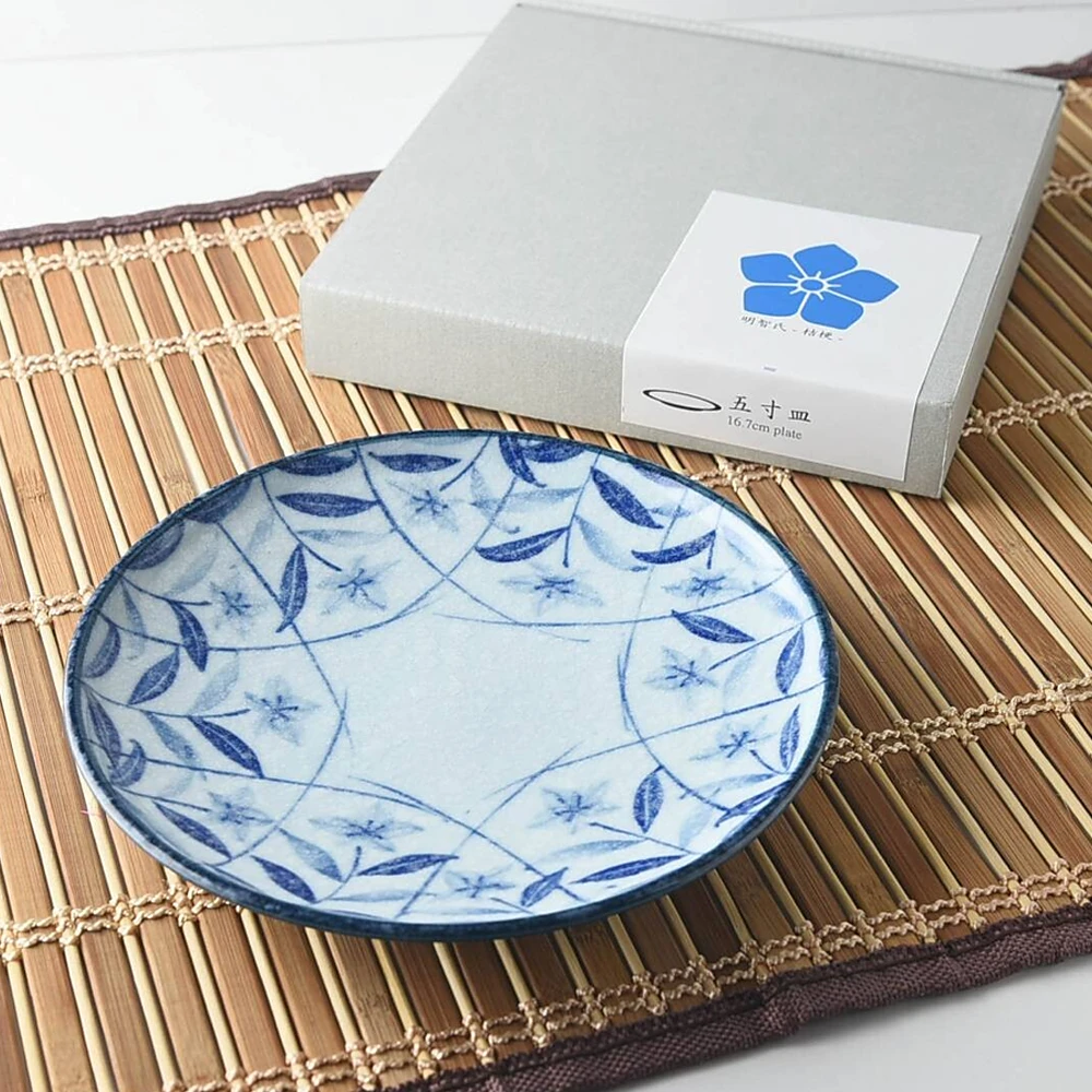This beautiful Mitsuhide Akechi Family Crest Kikyo Dinner Plate celebrates Japanese heritage with a refined blue Kikyo (bellflower) motif, inspired by the iconic family crest of the historical samurai, Mitsuhide Akechi.