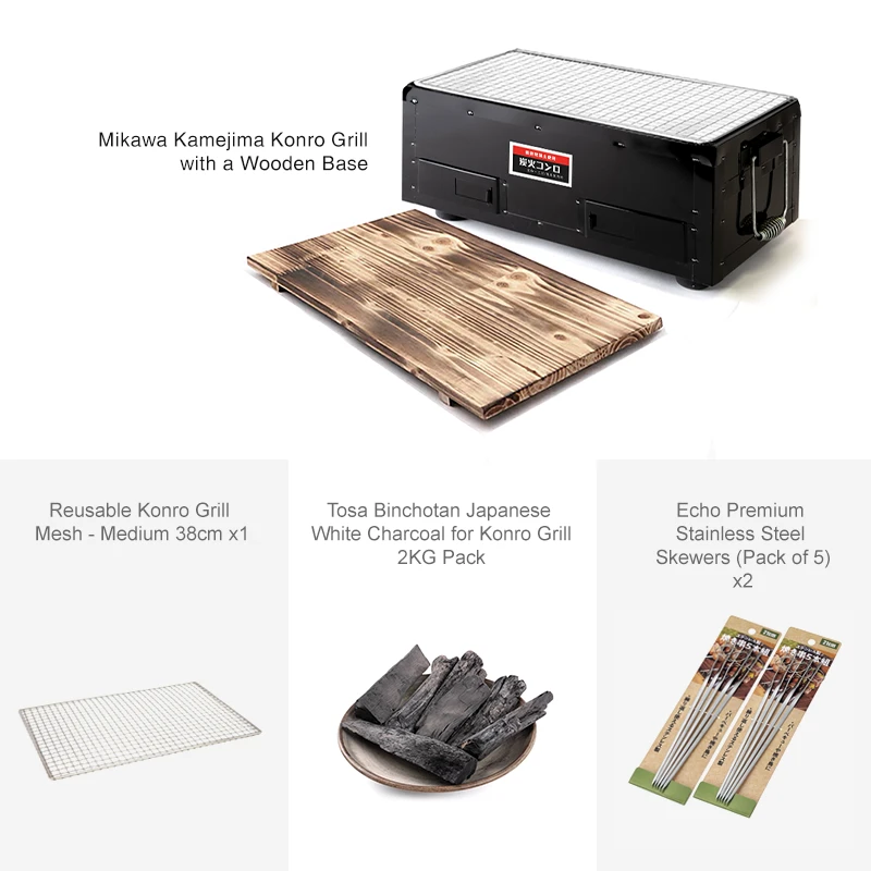 | Grill Mesh | 2 reusable konro grill mesh – medium 38cm included. You can buy spare reusable grill meshes on our website. |