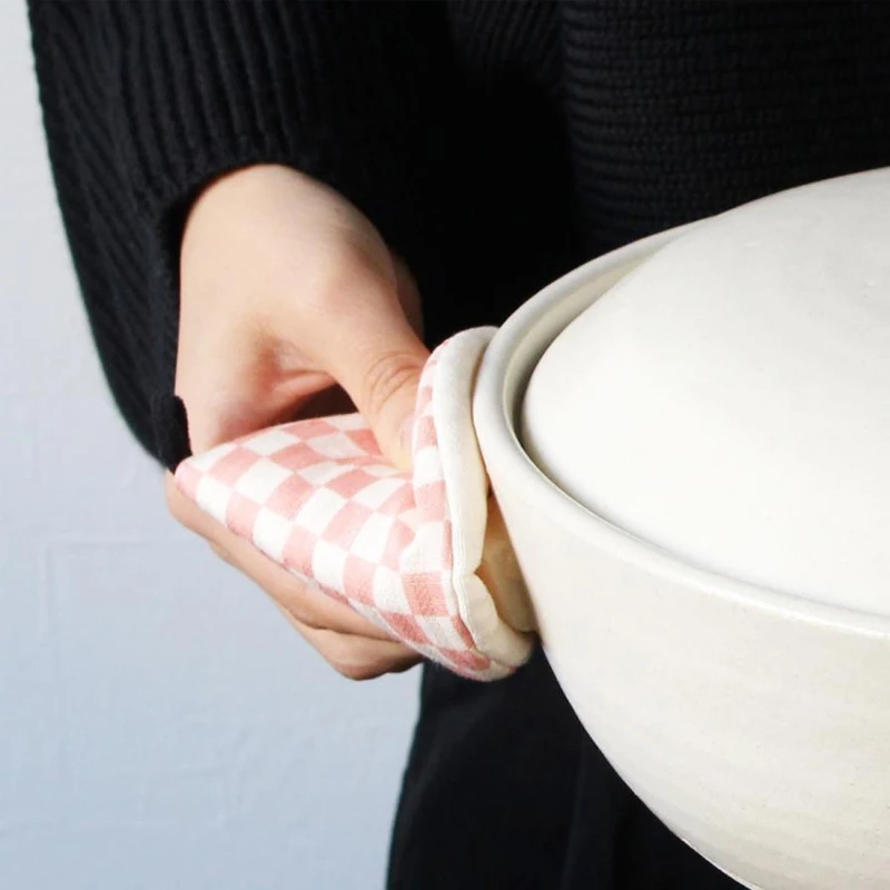 The pink and white checkered pattern adds a warm, inviting touch to your kitchen, blending seamlessly with both modern and traditional decors.