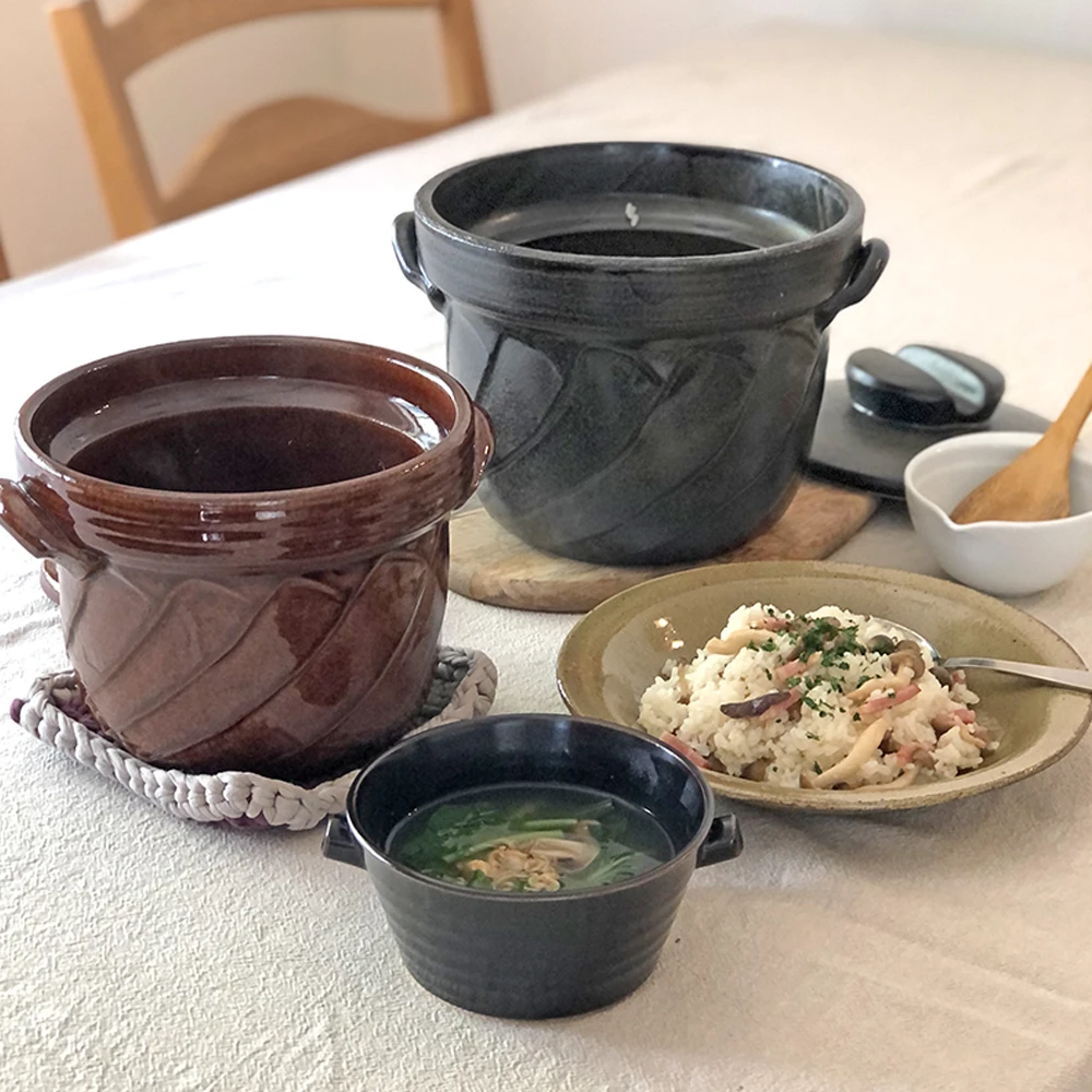 Saji Black Glaze Donabe (Japanese Clay Pot) Rice Pot 5 Cups