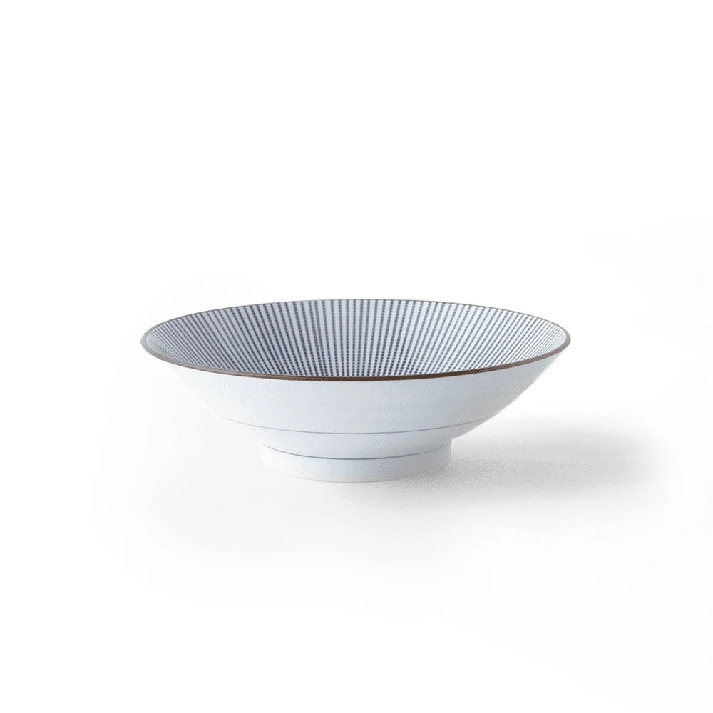 Adorned with classic blue rays and dots on white porcelain, this bowl embodies a timeless aesthetic that complements any dining table. While perfect for serving a steaming bowl of ramen, its generous size and deep structure also make it ideal for a variety of other dishes.