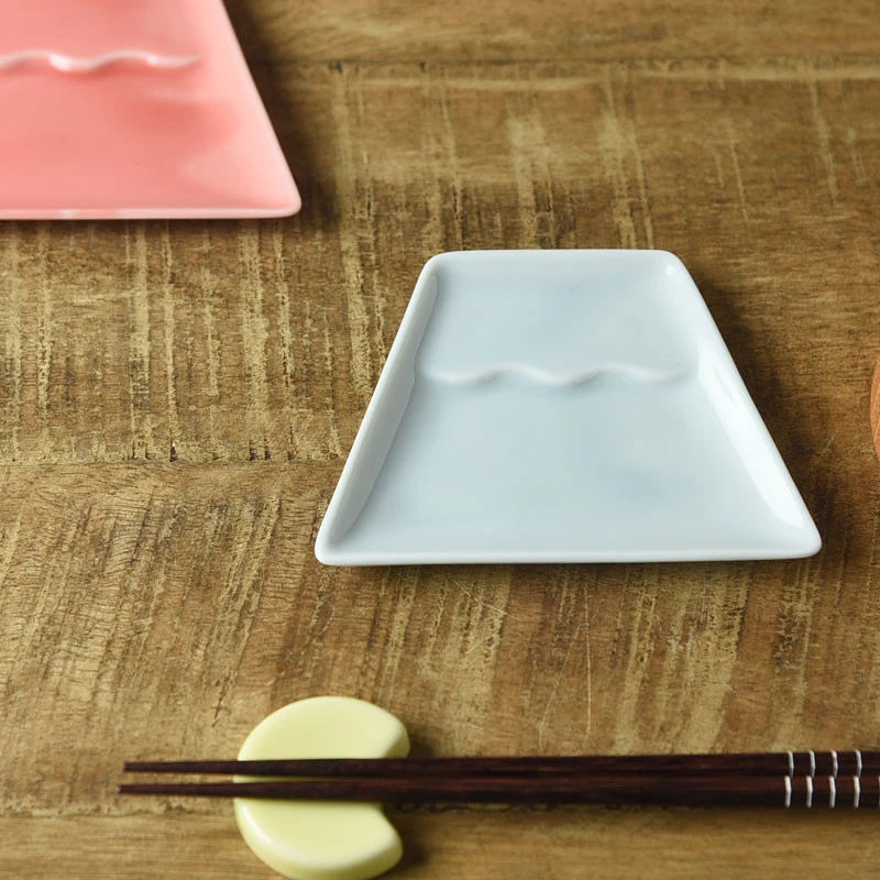 The plate features a raised ridge that represents the mountain’s peak, offering a perfect spot for condiments such as wasabi. The gentle slopes of the design allow soy sauce to pool naturally, creating a picturesque scene reminiscent of the tranquil landscape surrounding Mount Fuji.