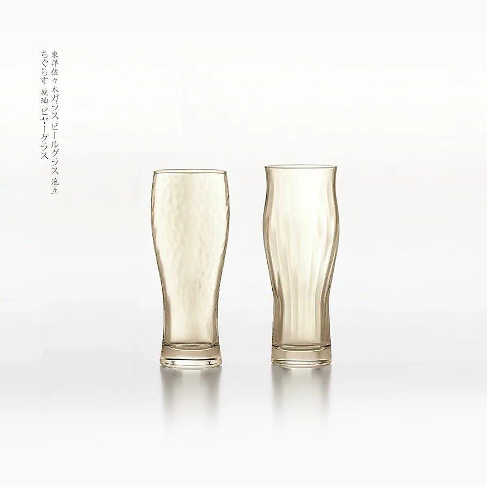 Toyo Sasaki Amber Hammered Pattern Beer Glass 365ml