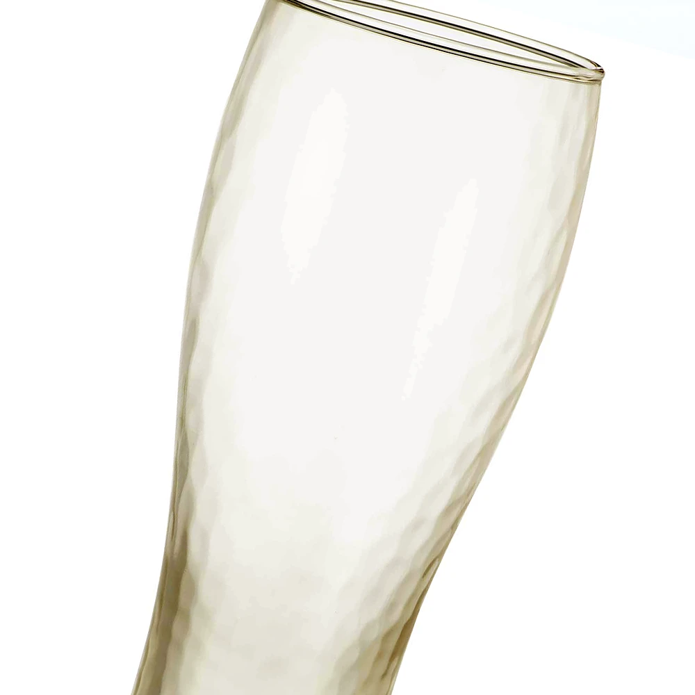 Each glass showcases a hammered texture, an intricate detail that catches the light and enhances the visual appeal of the beverage within. The beautiful amber hue of the glass adds a touch of warmth and sophistication, reminiscent of the glow of a setting sun.