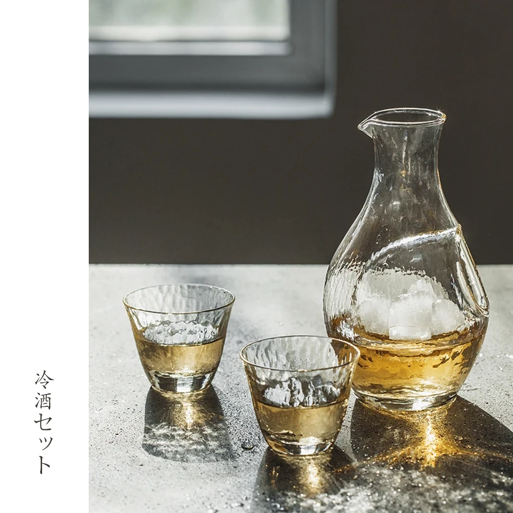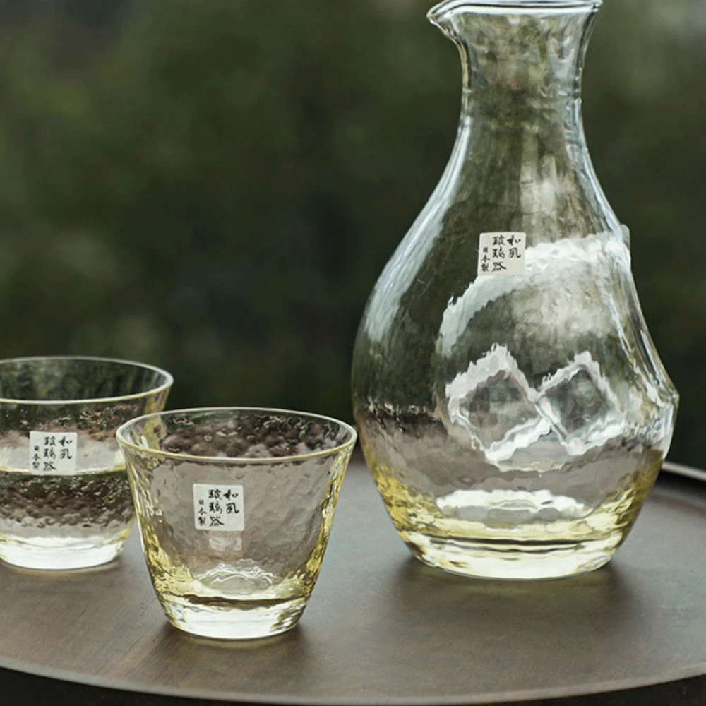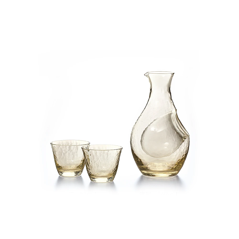Experience the allure of Japanese craftsmanship with this cold sake set, shaded in an enchanting amber colour. The set, which includes a sake bottle and two glasses, exudes charm and invites relaxation as you savour the sake.