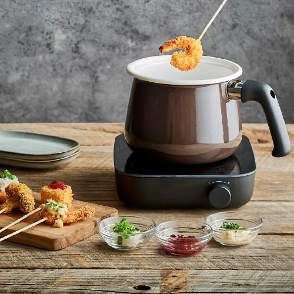 This compact, deep pot, complete with a lid, is designed for multifunctional use. Its versatile design supports a wide range of cooking methods: