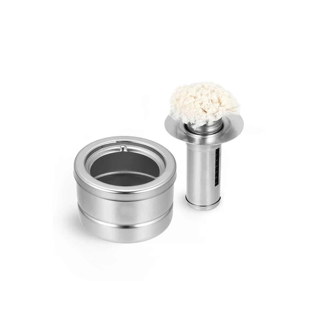 This professional oil basting set is ideal for upkeep of carbon steel cookware in domestic kitchens. To use, pour oil into the included small stainless steel pot and dip the brush.