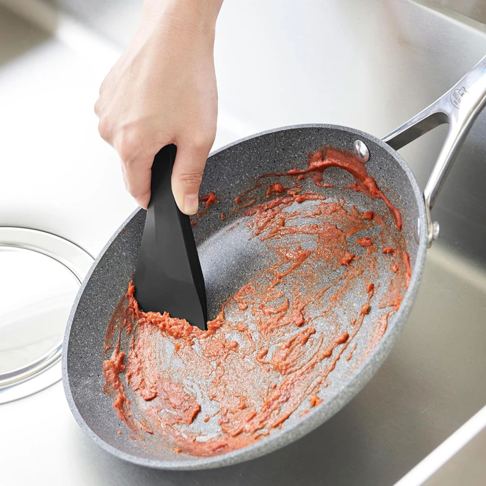 This compact silicone scraper features a built-in magnet, allowing it to attach easily to metal surfaces like fridge doors or splashbacks—keeping it conveniently within reach without hooks or drilling. Ideal for cleaning spills, wiping countertops, or scraping off stubborn food from pots and pans.