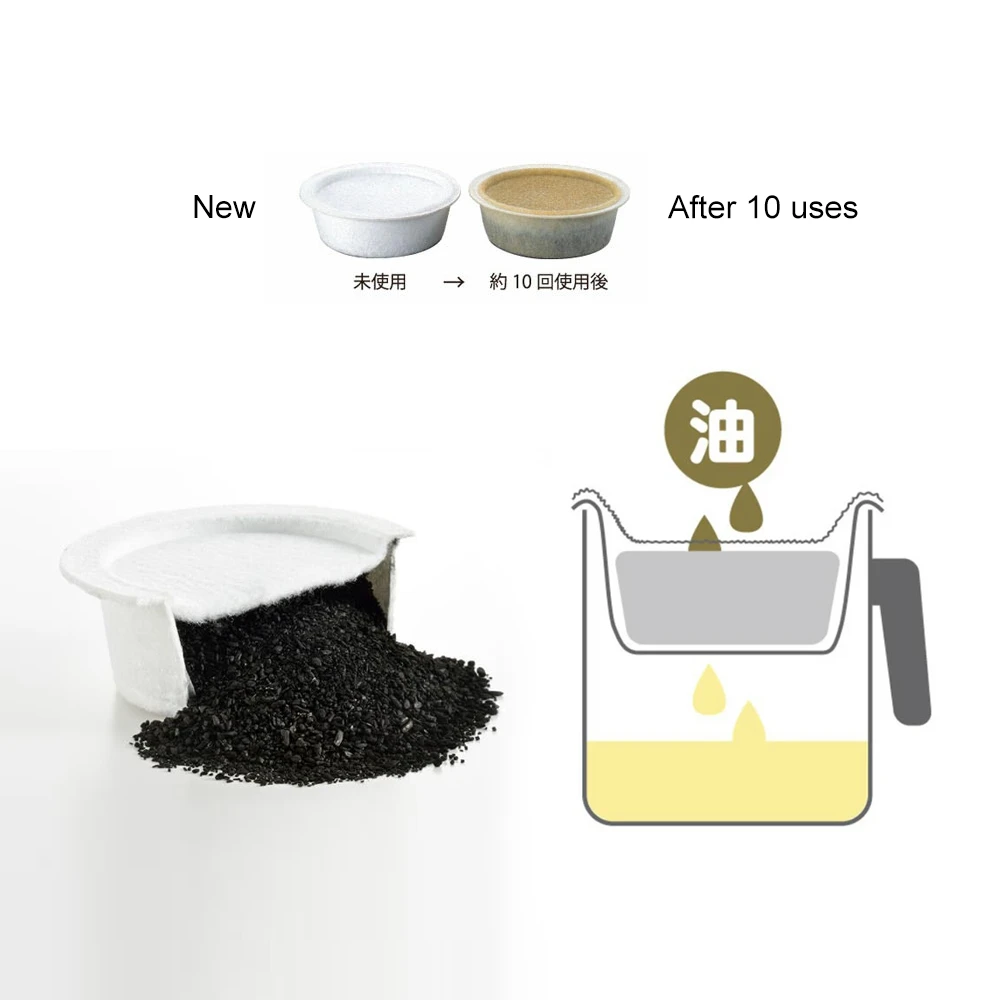 This is the replacement charcoal filter for the Yoshikawa charcoal oil filter pot. Each filter can be used 10 times each at the full capacity of the pot, which is 1.2L.
